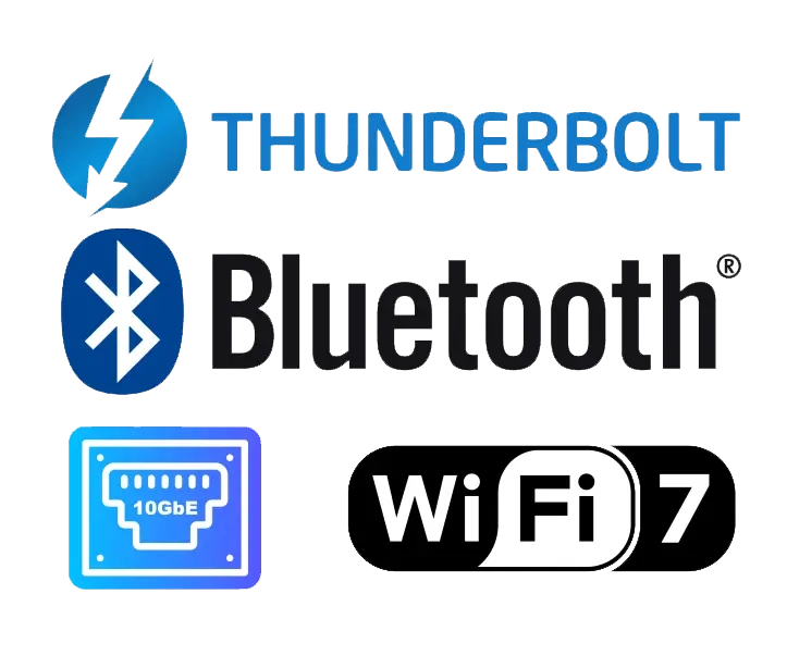 From WiFi7 and 10Gb Ethernet to Bluetooth v5.4 and Thunderbolt 5, each system provides you with fastest connections speeds and multiple options to suit your needs and ensure you're never waiting.