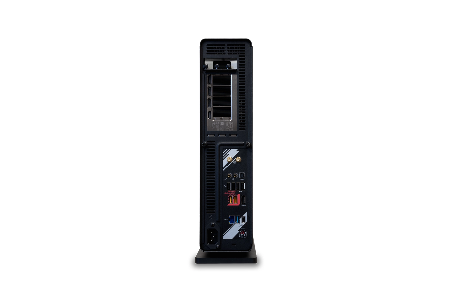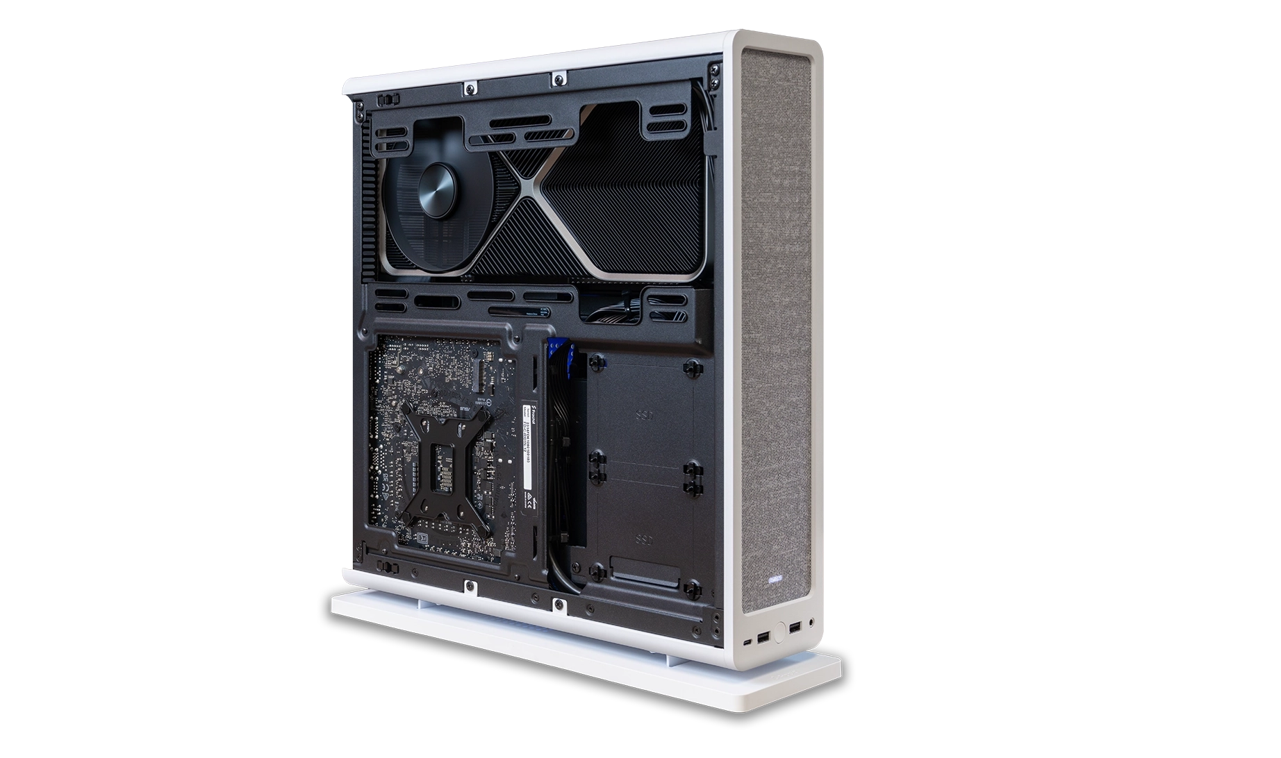 IKON is our smallest and most portable system with a sleek and elegant design that will fit in most confined spaces. Despite its small footprint, IKONs smart and thermally-optimized layout allows for the configuration of highest-end graphics cards and CPUs. IKON can be set up both vertically and horizontally with the included stand.