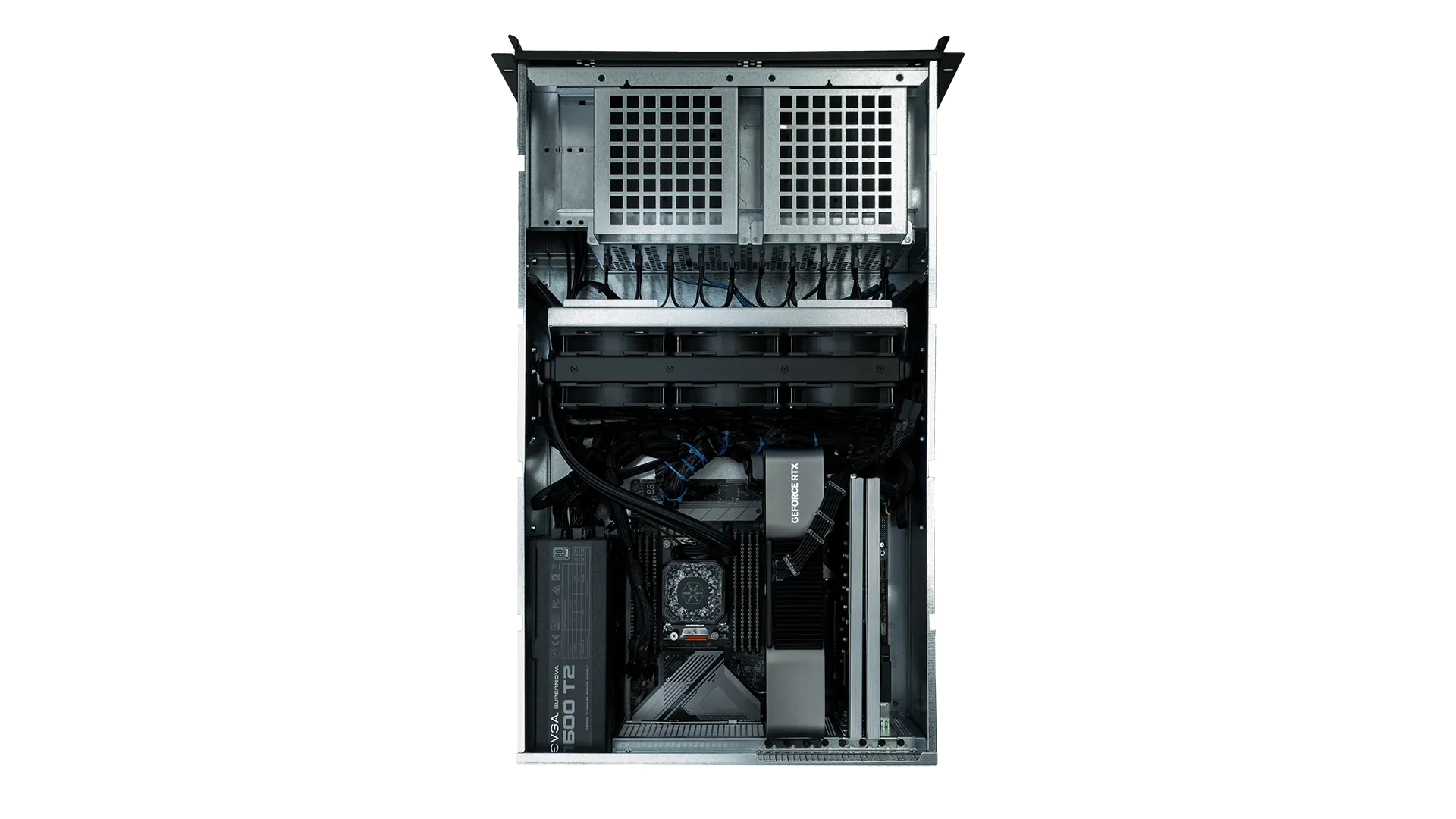 17.5" and 20" lengths. Quiet, professional-grade components for AI, Science and Engineering applications. Up to four graphics cards.