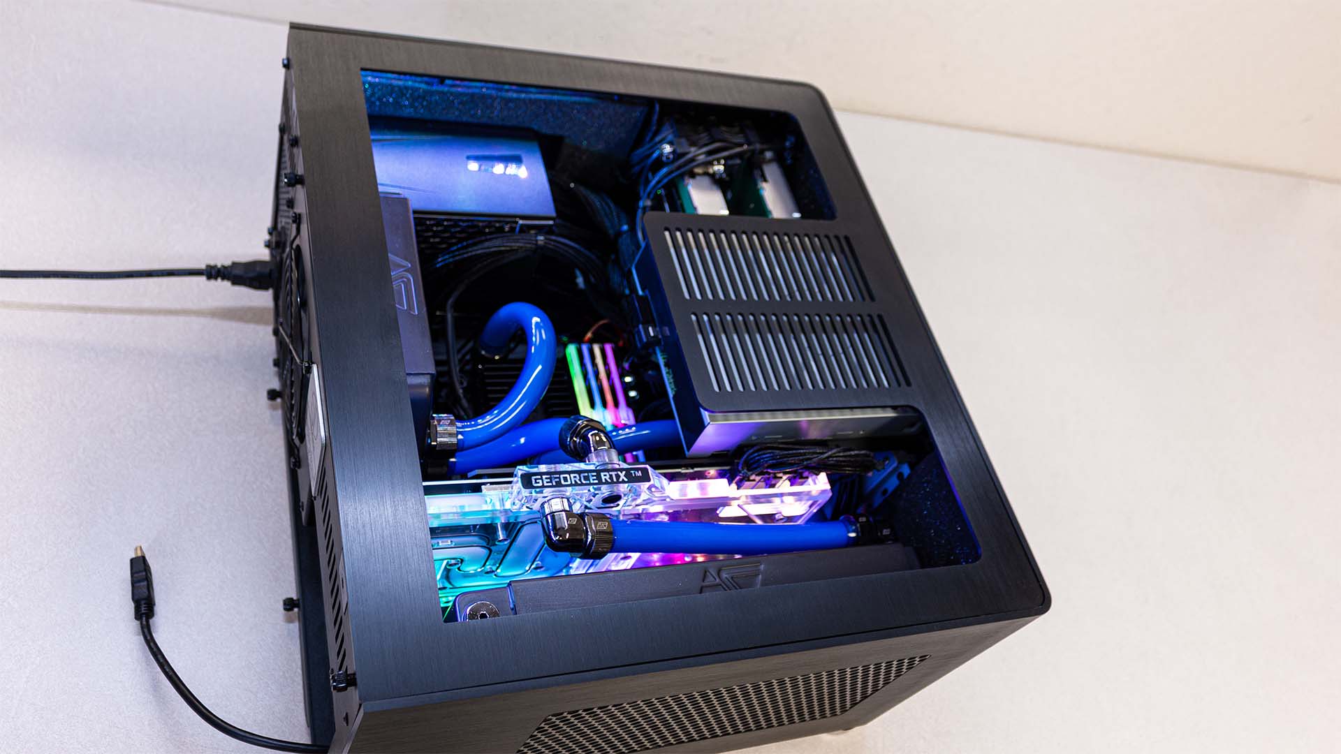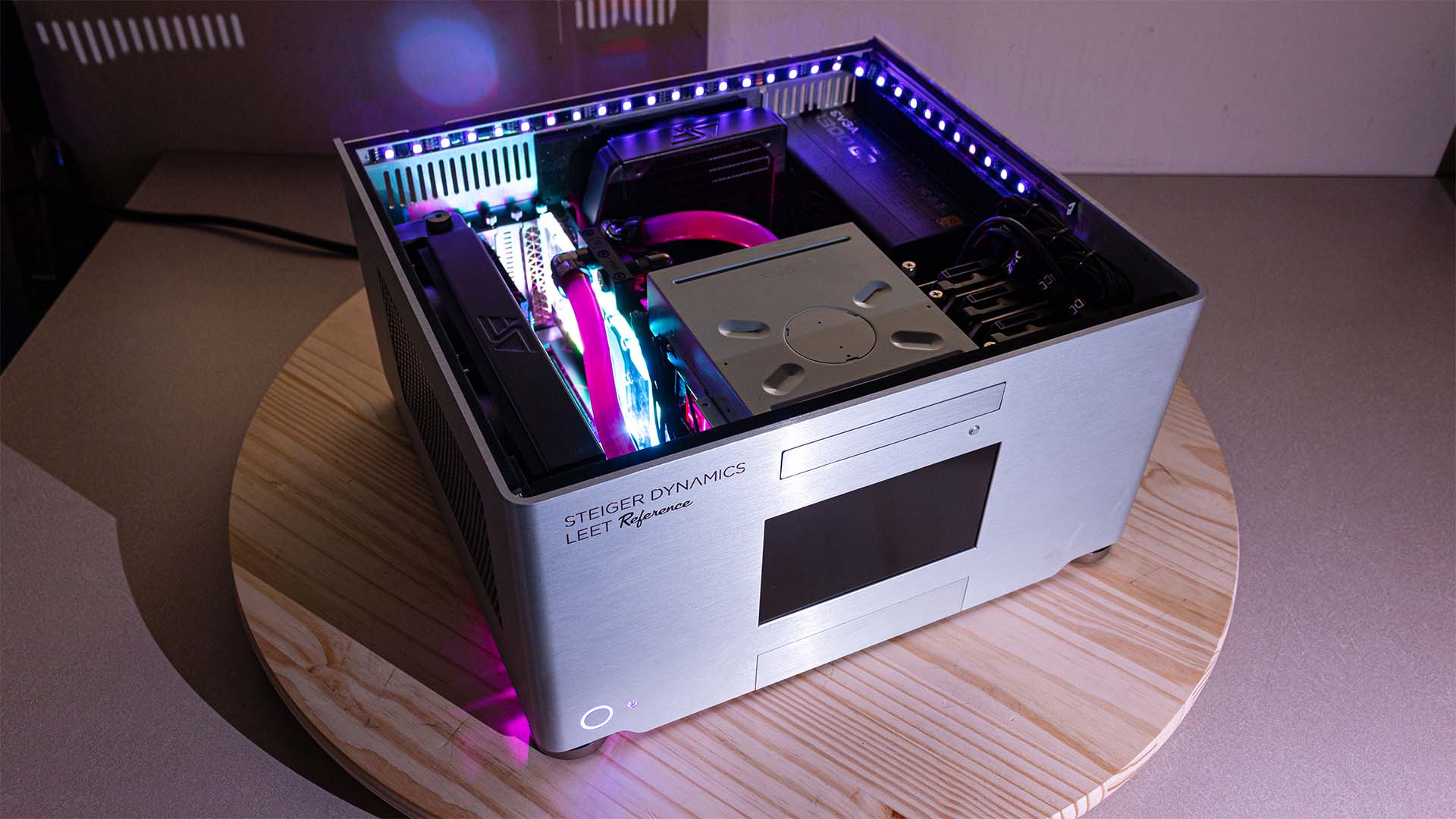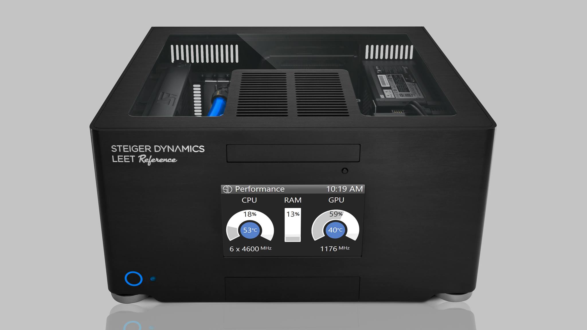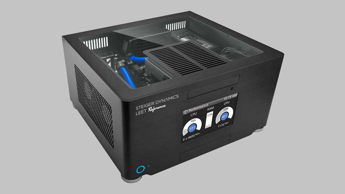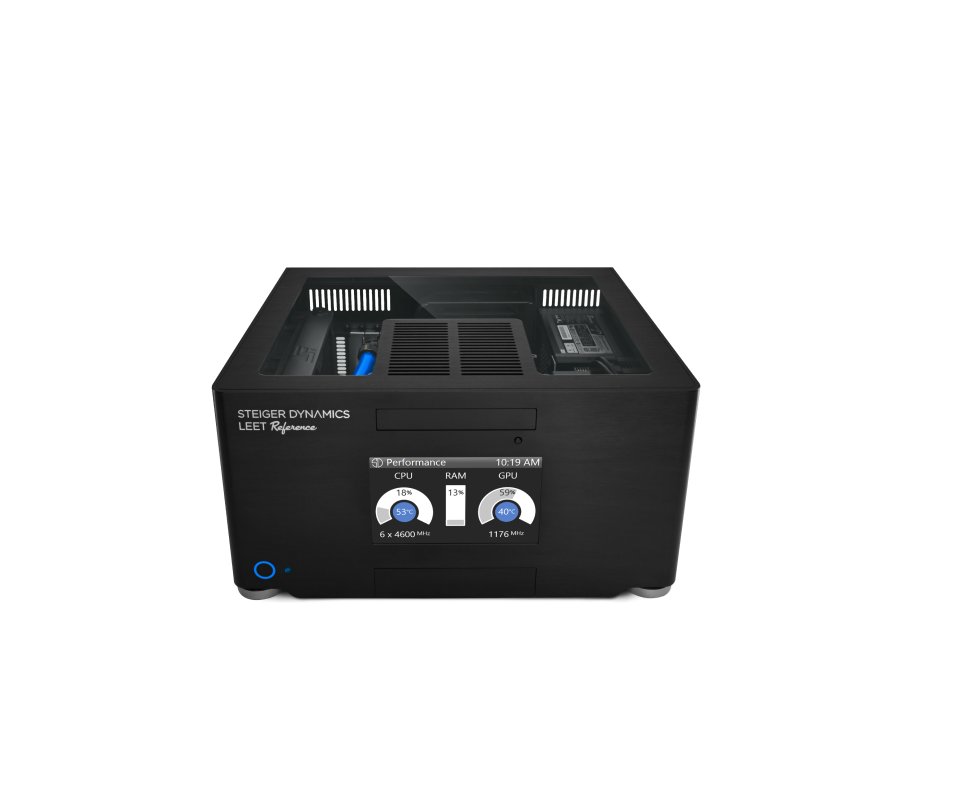 LEET is the first and only fully liquid-cooled Gaming HTPC, boasting maximum quietness even under full load. Capable of outputting 4K/120p or 8K/60p, LEET is ready for next-gen displays and ultra-quality graphics. With its rigid, 0.2 inches (5 mm) thick, one-piece aluminum shell, designed to minimize electromagnetic interference and vibrations, LEET is made to withstand the test of time. The front display with our LEET Monitor App will always keep you up-to-date on system temperatures, memory utilization and other important metrics.
