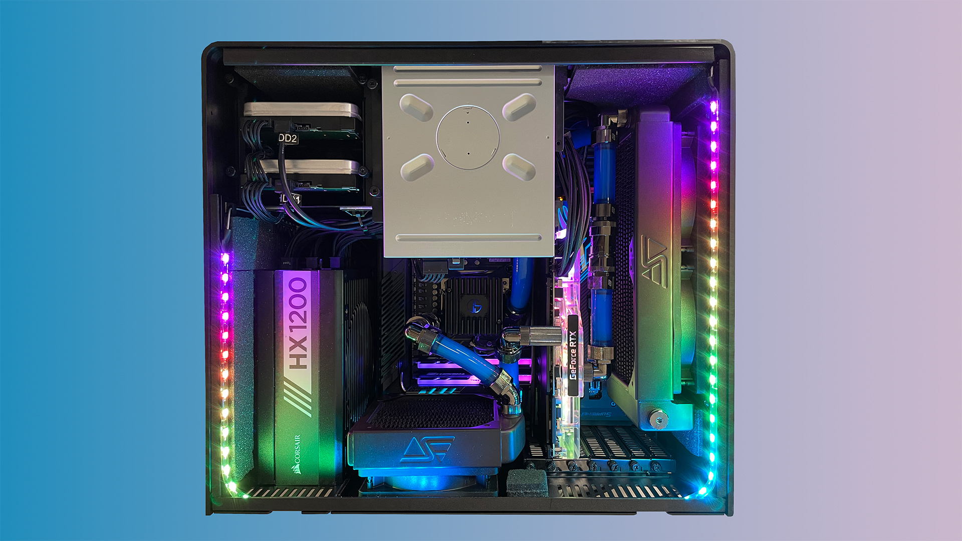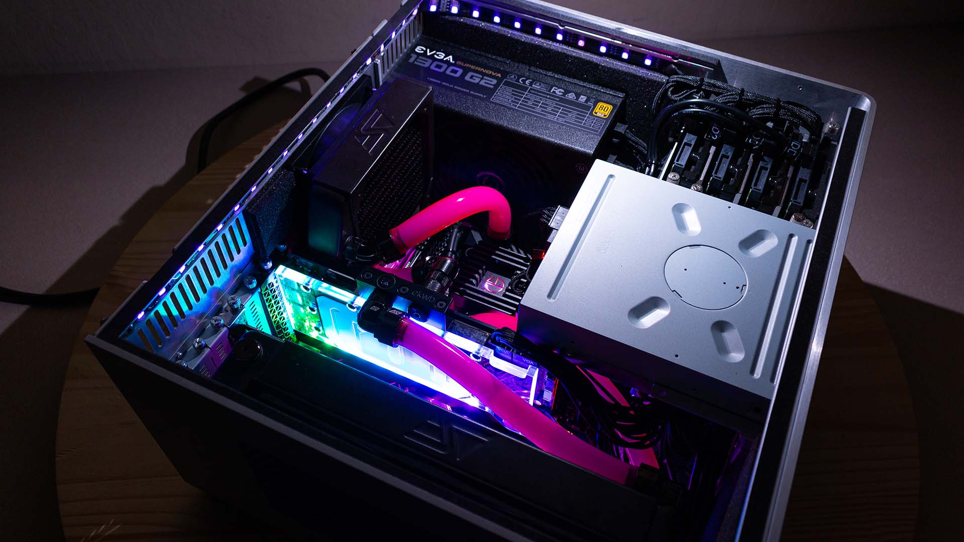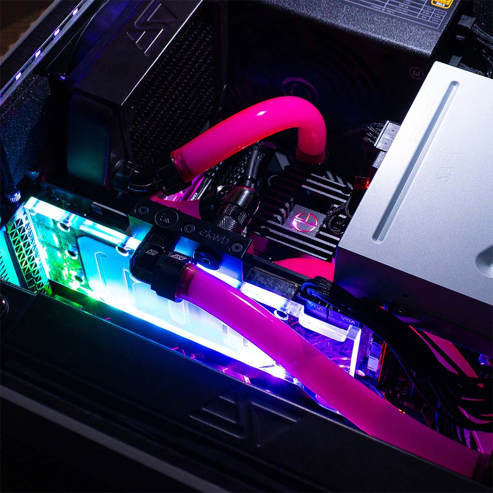 LEET is a full closed-loop liquid cooling system supporting both the CPU and graphics card with a combined 360mm of radiator space.