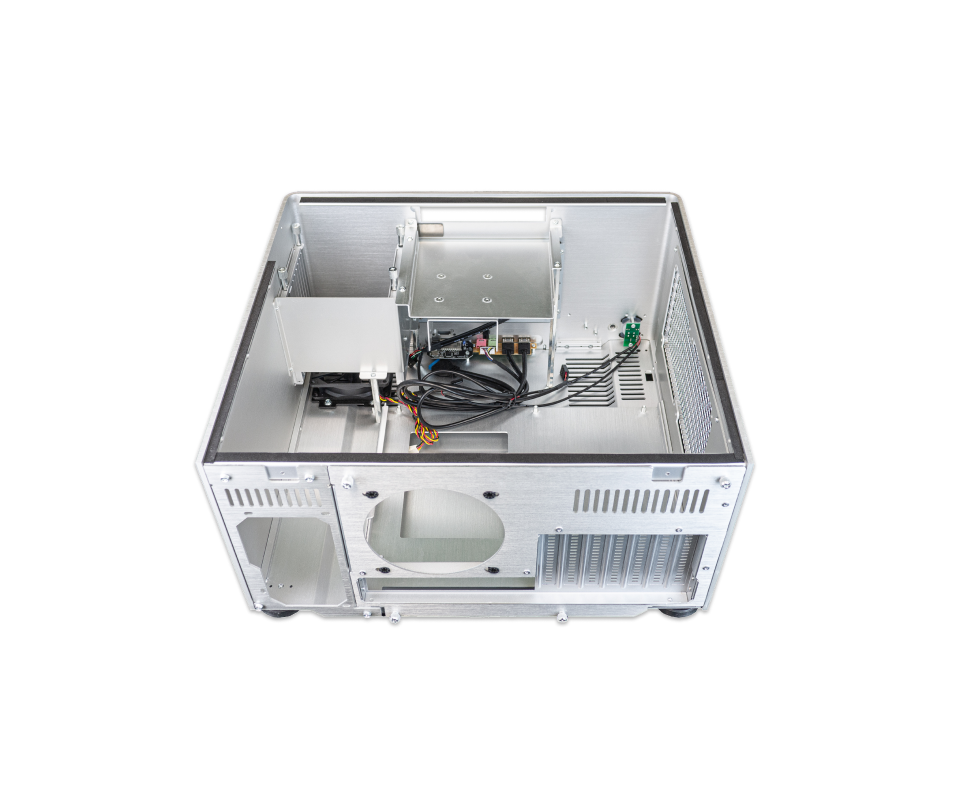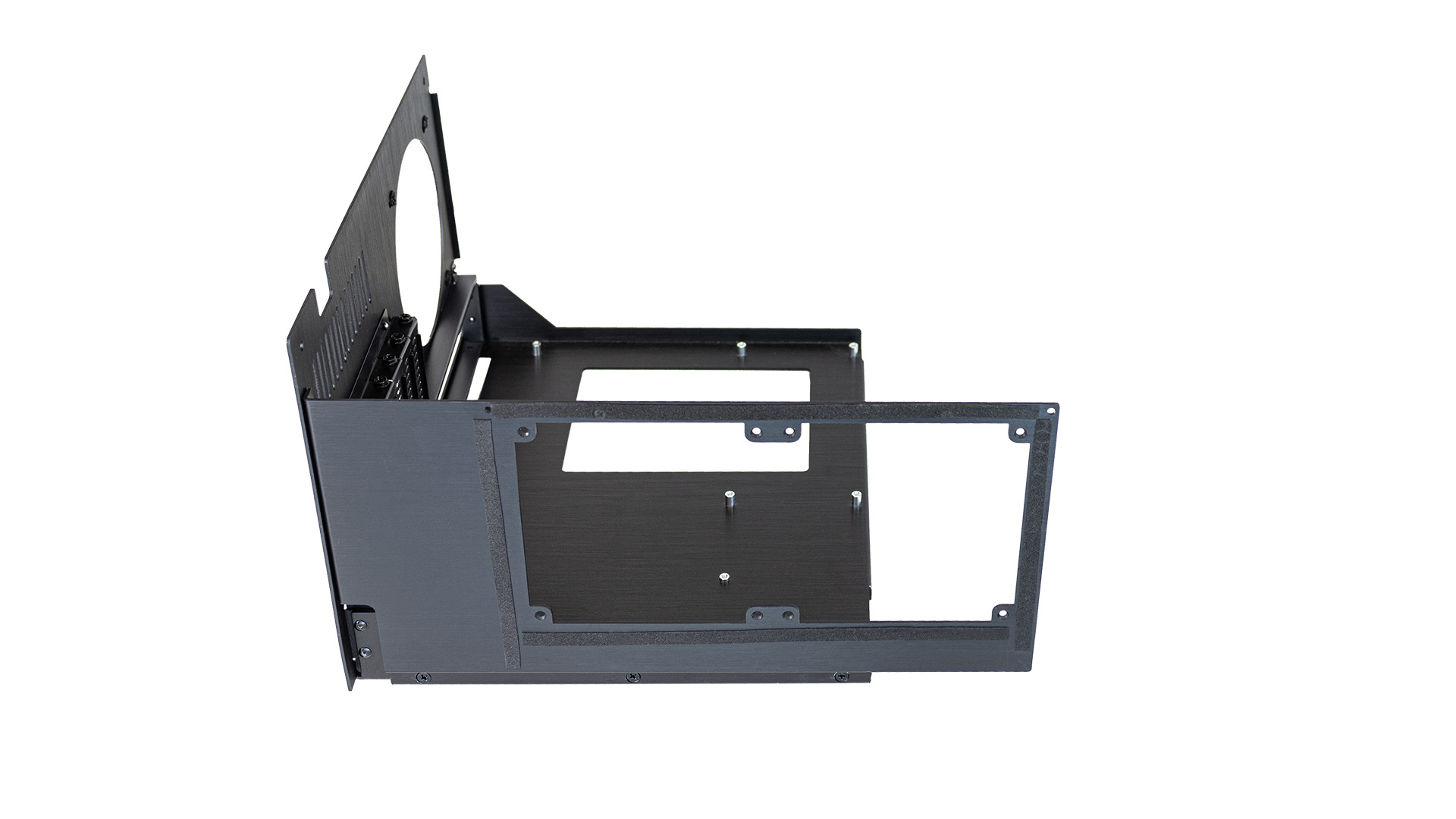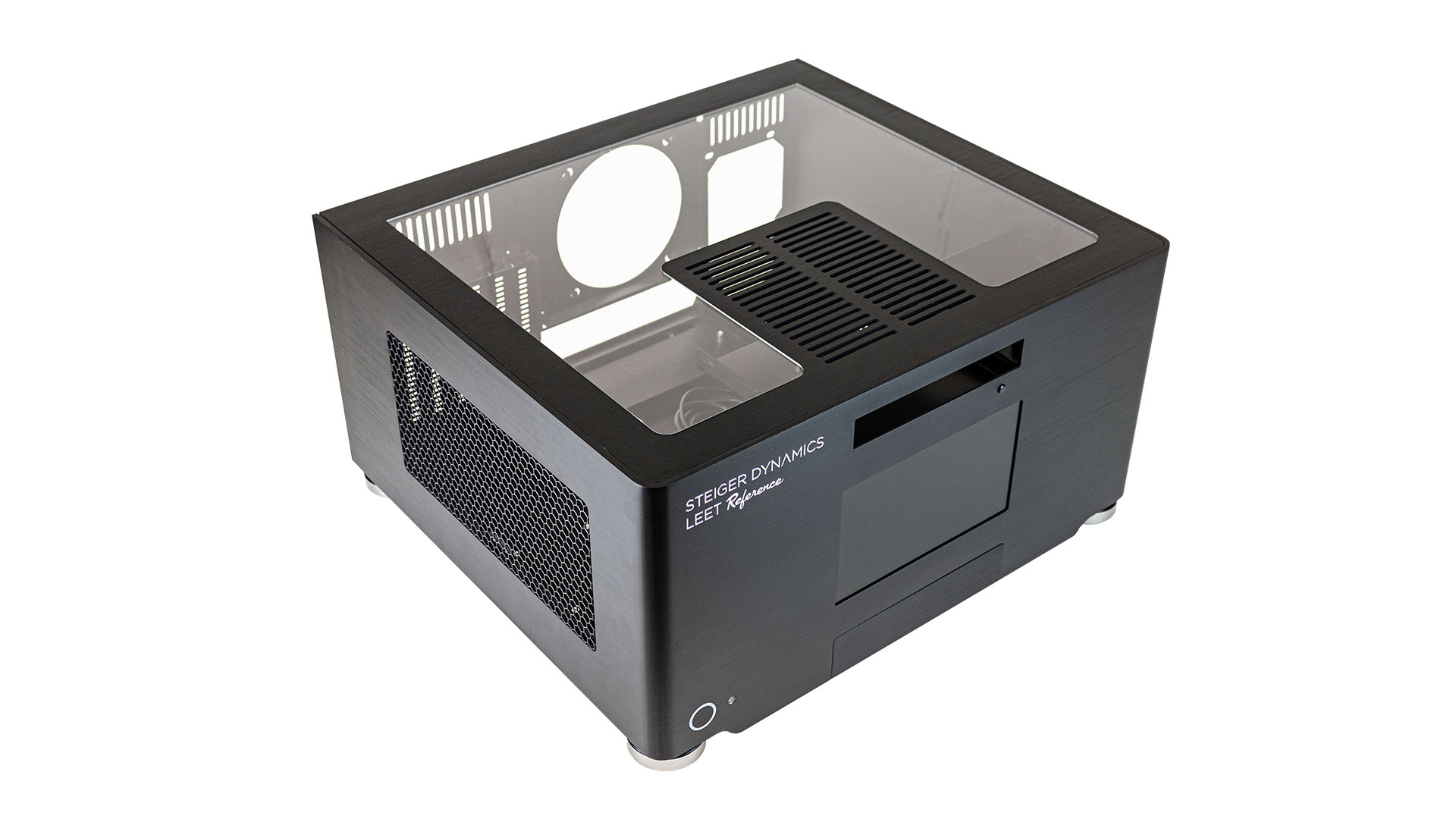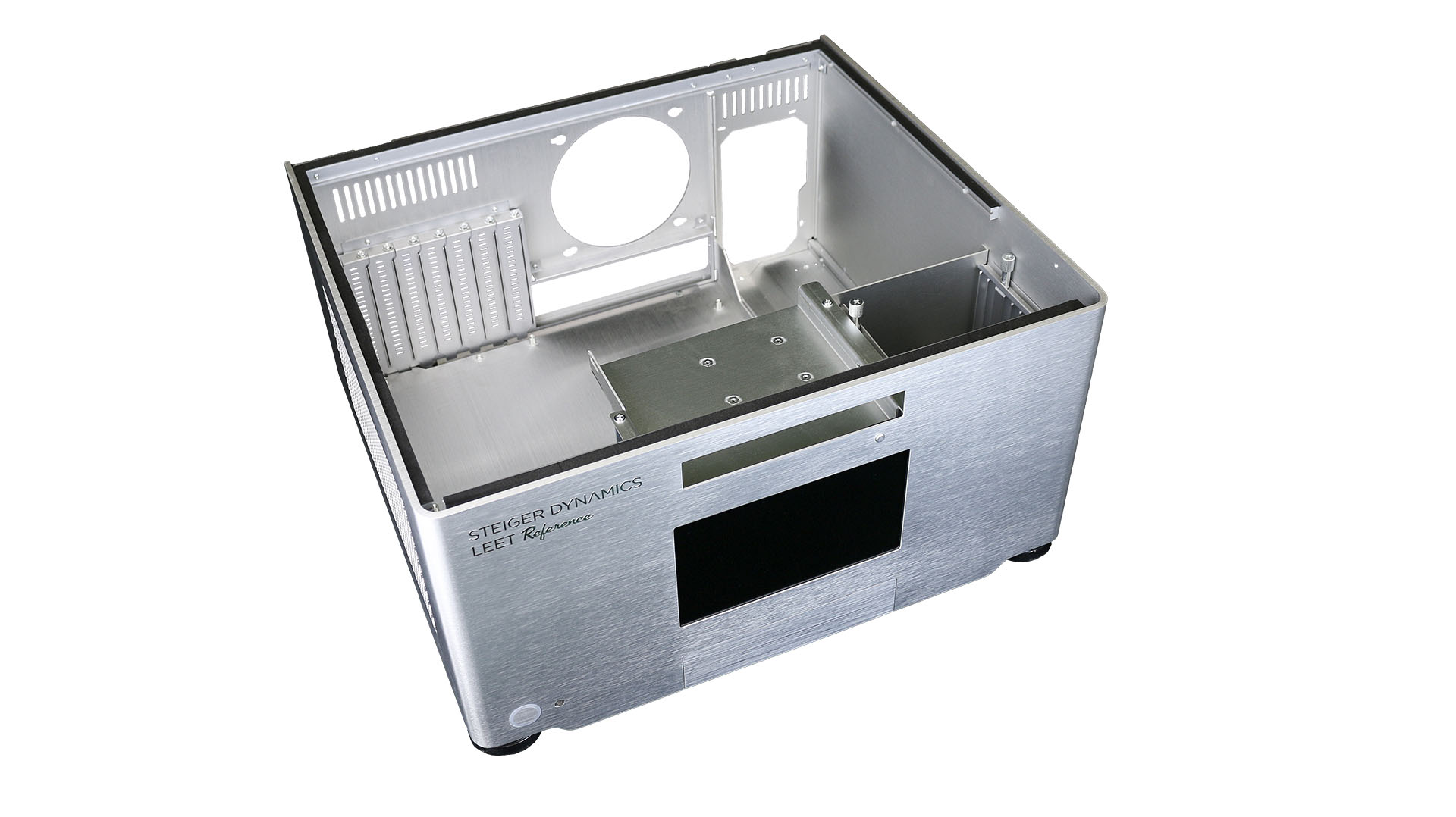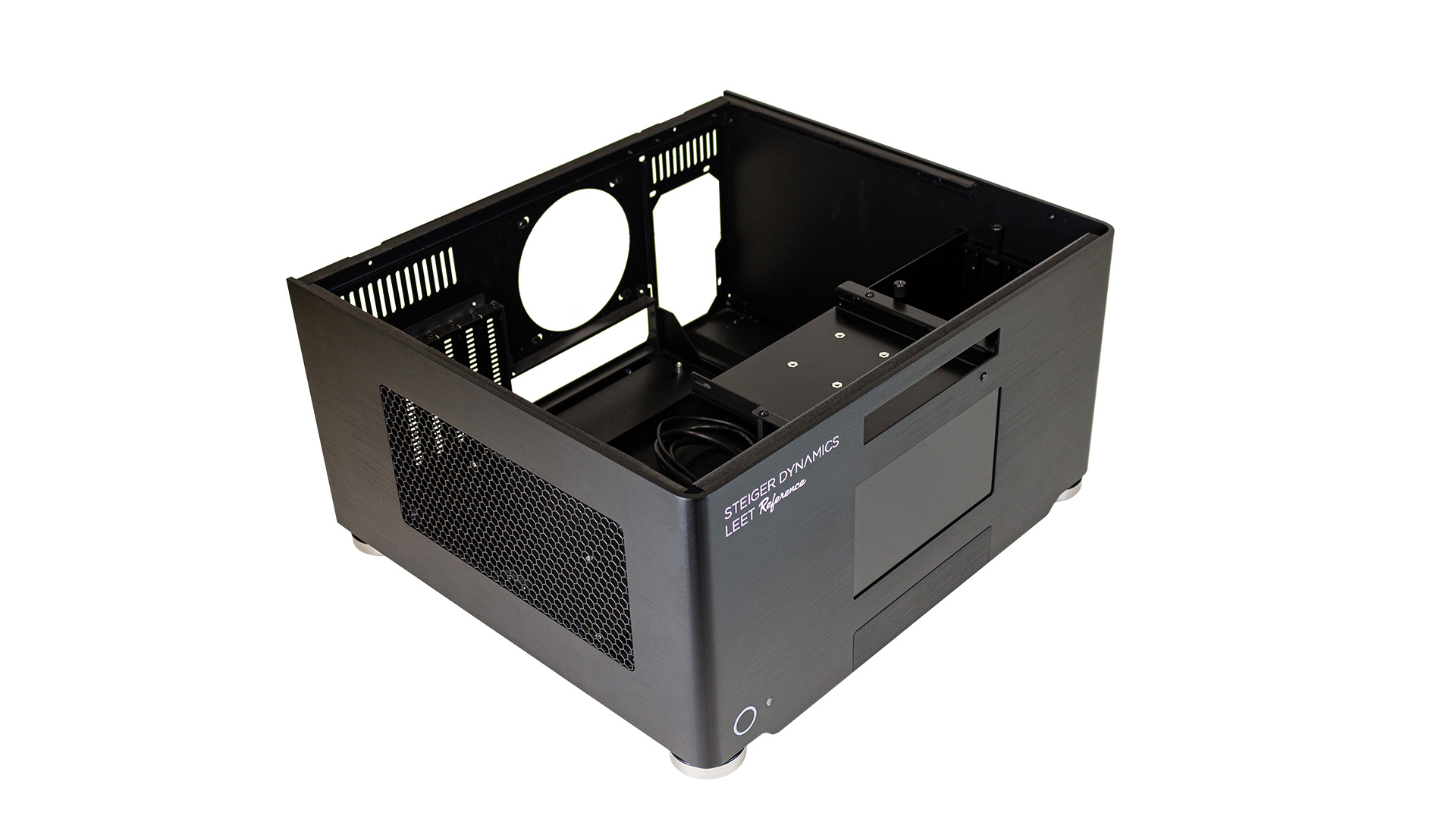 LEET Chassis is the one-and-only HTPC case designed for open-loop liquid cooling and maximum quietness. 360 mm total radiator space allow for the quiet dissipation of up to 600W of heat. With its rigid, 0.2 inches (5 mm) thick, one-piece aluminum shell, designed to minimize electromagnetic interference and vibrations, LEET Chassis is made to withstand the test of time. The integrated, USB-connected front display paired with our light-weight LEET Monitor App, will always keep you up-to-date on system temperatures, memory utilization and other key metrics.
