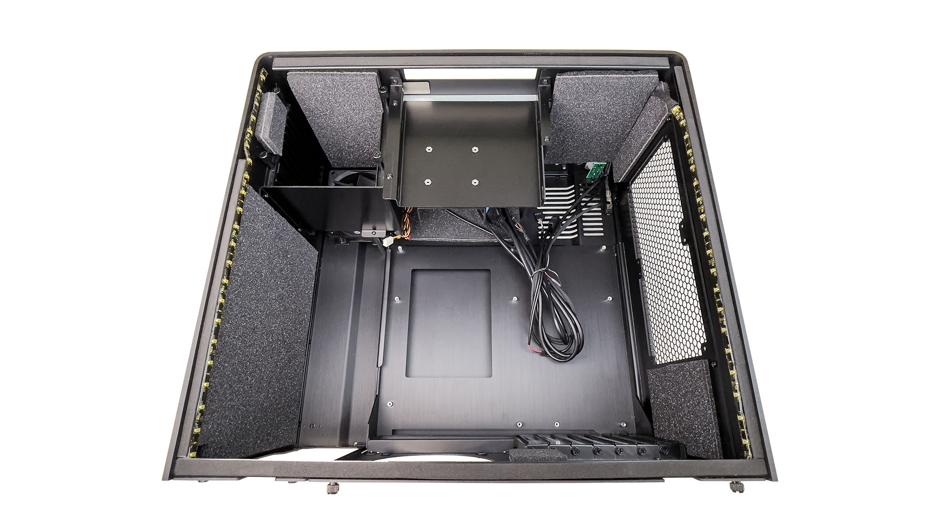 Chose the acrylic glass airflow lid option to showcase your components in style and with as many LEDs as you like. We recommend the solid top panel with sound deadening foam for maximum quietness or if you plan to stack other devices on top of the LEET Chassis.